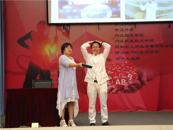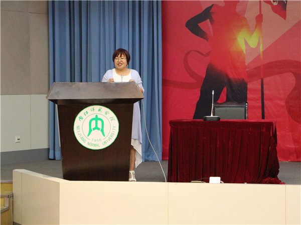 讲座的高潮,张博士请全体人员起立,闭上眼睛,双手合十,用心去感恩家人。感谢他们赋予的绝无仅有的生命;感谢他们对自己一直的包容和爱;感谢他们的努力和付出。张教授向大家传递出只有学会感恩,才会成为一个心理健康的人。继而张博士又教给参与者们“倒酒”式、“成吉思汗弯弓射大雕”式、“撒钱”式等大笑疗法,其爽朗有节奏并带有魔性的笑声不仅给在座人员带来了快乐,也在无形中缓解和释放了大家的压力。