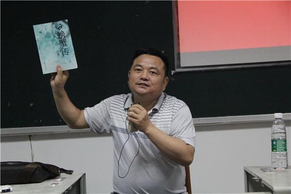 讲座伊始,朱明勋教授为大家讲授《螃蟹传》小说的主要内容。在小说中,其围绕“权、钱、女人”这一主线展开叙述。接着,朱教授说明《螃蟹传》主要人物的故事情节。随后介绍主要人物:乌大智、乌大勇、乌大隐,并围绕三人物展开情节叙述,紧接着,他阐述了主要人物名字的寓意。如乌大智,表面智慧,常利用小聪明做事,感觉不管到哪里都有官做,其实只顾眼前利益,故无真正的“大智”。对此,他强调到写作人物塑造需栩栩如生。其次,受鲁迅《药》中为缓解悲剧的写作方式影响,为穷困一生的乌大勇安排一好结局,给悲剧人物多产生一些希望。同时,朱教授鼓励同学们怀有一个作家梦想,通过笔杆清晰写出自己的思想,并能够很好地表达出来。