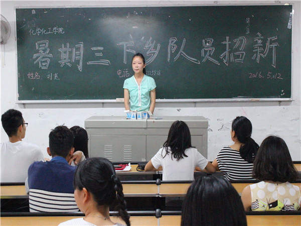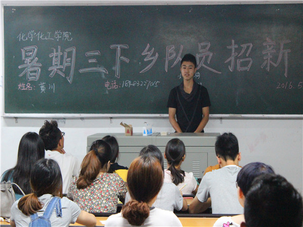 为发扬我们历久弥新的“三下乡”优良传统,展示我院莘莘学子的道德风范和特色风采,我院于5月12日19:00在一教301、302进行了2016年暑期“三下乡”招新面试。此次面试共有三支队伍:义务支教服务队、资源循环实践队和水质分析调研队。三支队伍的负责人及各部门部长出席了本次面试。