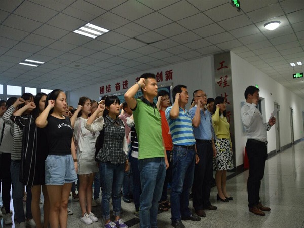 课前我院全体学生党员重温了入党誓言。庄严的誓言响彻大楼,表达着党员同学要更加严格要求自己、牢记入党誓言、坚定为共产主义事业而奋斗终身的决心。