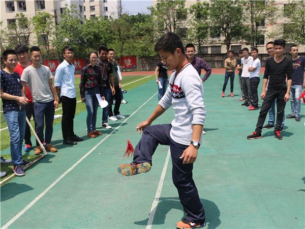 为加强各班间的交流,增强学生体育锻炼的意识,提供展示寝室风采的舞台,并选出前十名参加全校的寝室文化节比赛。我院于2016年5月9日12:40在田径场进行寝室文化节之趣味运动会的初选。,此次运动会有37个寝室参赛,比赛通过踢毽子、跳绳和现场答题三个项目综合计时的方式,总时间越短,其的排名就越高。