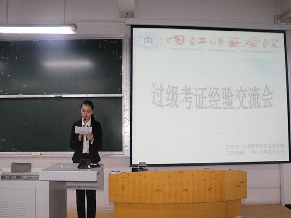 为使大一同学更加深入了解各种过级考证,做到“知己知彼,百战不殆”,我院特于2016年5月9日19点整在五教南207举行“过级考证经验交流会”。本次会议汇聚了我院15级3个班的学子,来自大二的几位“前辈”作为嘉宾为大一的师弟师妹分享了有关英语四六级、计算机二级过级和A级证书认证的经验与心得。15级1班的向霞同学担任此次交流会的主持人。