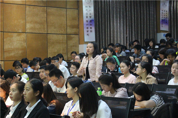 到了提问环节,同学们积极踊跃地向叶玉梅提问,叶玉梅谈到自己做校徽主题的初衷。演讲在一片热烈的掌声中圆满结束。