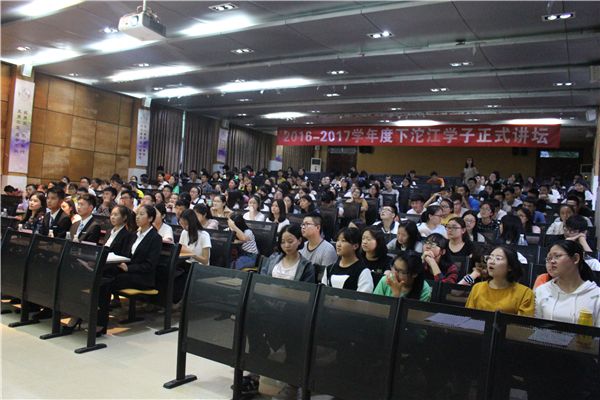 5月11日晚7点整,沱江学子讲坛在第二学术报告厅举行,演讲人是来自文学院2014级1班的叶玉梅,她演讲的主题是:“从视觉艺术看校徽的文化意蕴”。本次讲坛邀请到的嘉宾有张文彬老师和陈怡君老师。