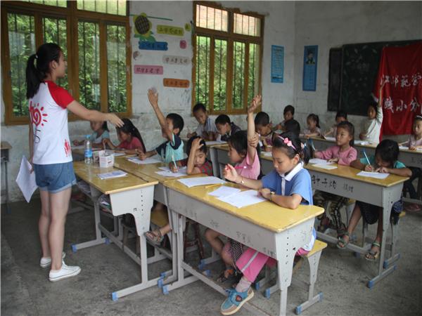 在这几天里,队员们已经陆续开设语文、数学、外语、舞蹈、音乐、历史、手工、美术课。在上了几天课后,志愿者们在队长张艳红的组织下,开了一次工作会,每个人对这几天上课时出现的问题进行了总结,把各自好的经验进行分享。有的老师提出,有些小朋友上课太调皮,应该怎样用一些适当的方法让他们能认真听课;有的老师则提出小朋友们的基础知识可能比较薄弱,跟同龄小朋友比,需要在主科方面多花一点时间;有的老师还提出,很多小朋友不敢上台说话,很胆小,针对这一问题,大家一致同意举办一次演讲比赛,锻炼小朋友们的勇气。随后,队员们一起讨论了接下来要举办的趣味运动会和汇报演出等,做好以后工作的准备。