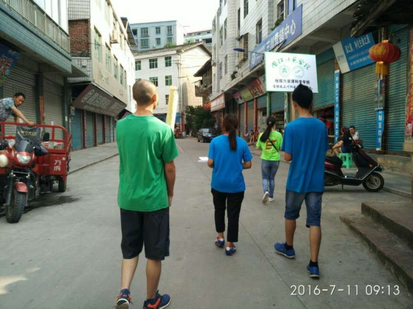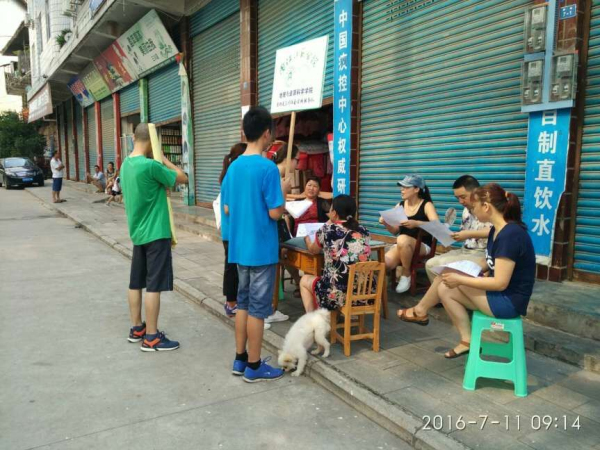 上午八点,志愿者们把全部活动用具拿到三川镇文化站后,带着宣传单,走上街头,开始向三川场镇的父老乡亲宣传本次义务志愿活动,招募学生。