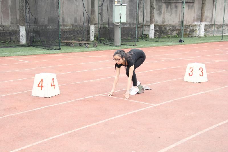 她们时不时的点点脚,拉拉腿,调整着起跑道具的摆放。“砰”的一声划破气氛的枪声响起,来自各个学院的加油声也随之响起,她们在小雨点中奋力奔跑着,挥洒着汗水,与雨水作伴跑出别样的风采。有的拉拉队员们也紧张的跟随着她们的步伐,早早跑在终点站等候着她们的归来。