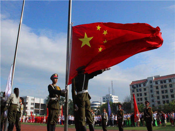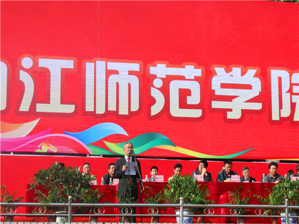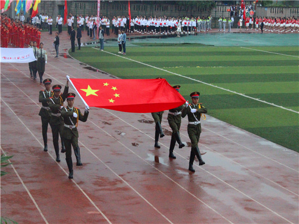 随着方队表演的结束,《义勇军进行曲》慷慨激昂的音乐声响起。庄严的五星红旗、校旗在所有人的注目中冉冉升空。校长张志远教授为开幕式致辞,强调了推进科学内师、文化内师、特色内师的发展的重要性,体育学院张亮老师代表全体裁判员宣誓:比赛一定是“公平、公正、公开”。经管学院彭益倩同学代表全体运动员宣誓:比赛中,尊重裁判,尊重对手,友谊第一,比赛第二。