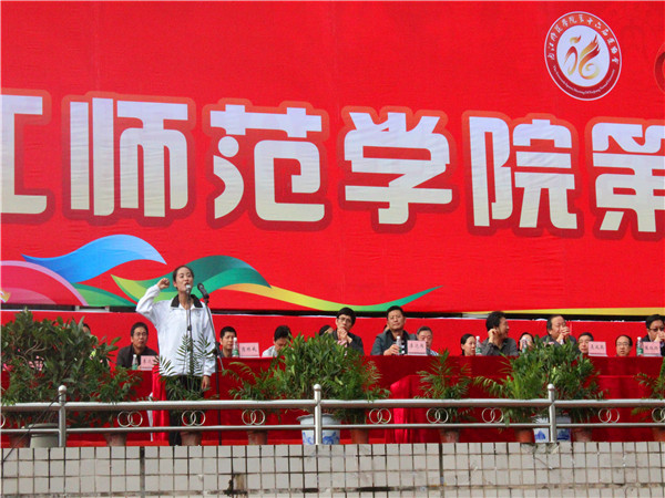 4月20日8:00,内江师范学院第十六届运动会开幕式在田径场伴随着激昂的音乐隆重召开。尽管天色阴沉,地面仍存着些昨夜雨水留下的浅浅的水洼,但是田径场上人声鼎沸,现场气氛十分火热。出席本次开幕式的领导有学校党委书记谢峰、校长张志远、副校长黄辉、副校长张蕴书,以及学校各职能部门负责人和各二级学院领导。开幕式由副校长曾良主持。
