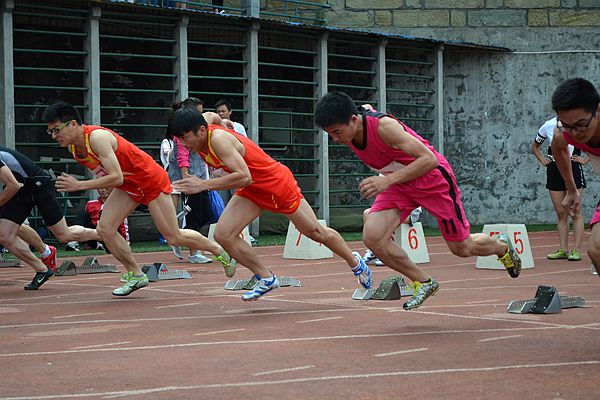 在进行运动员的检录工作后,代表着数学与信息科学学院的运动健儿们依次入场进行比赛。首先在山顶篮球场进行了各学院之间激烈的拔河比赛。下午2点30分进行了男子乙组100米决赛,随着裁判员的预备枪“砰”的一声打响,运动员们犹如一束闪电般冲向终点,速度惊人,赛道旁的观众也激情洋溢,为他们加油打气。现场的氛围如同骄阳一般火热。