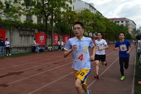 5000米的赛道,演绎的是奋斗和拼搏。漫漫长路,他们愿一人独撑。伴随着一声起跑令响,几位运动员如离弦之箭,飞奔向前。开始时几位运动员你追我赶,赛事激烈,引起观众台上一阵阵的欢呼声。随着赛事进入白热化阶段,刘志承受着体力与精神的压迫,目光坚毅,直视前方,只任汗水溶于泪水,脚步却从不停歇。弯道时,刘志发挥平时稳扎稳打的技巧,均匀的调整呼吸和步伐的节奏,踏着矫健的步伐,留给观众的是他健步如飞的潇洒侧影。在最后激动人心的时刻,刘志跨过终点,一直回荡在耳边的是观众台上爆发出如雷震耳的欢呼声!虽然刘志同学未能折桂,但他永不服输的精神却感染着我们每一个人。