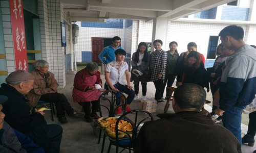 4月9日和13日,音乐学院社会实践基地的志愿者们分别来到内江市胜利镇敬老院、靖民镇敬老院和夕阳红敬老院看望孤寡老人。