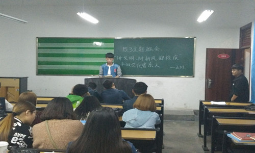 在内师诞辰60周年之际,结合文明礼貌月活动和音乐学院2015级学生的思想动态,4月27日晚上6:00,音乐学院在四教六楼开展了以“讲文明、树新风、迎校庆、争做文化音乐人”的主题班会,2015级年级辅导员蔡朋程和班主任助理及2015级全体同学参加了此次班会,班会由各班团支书主持。