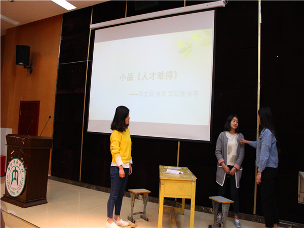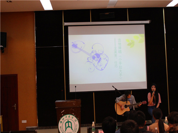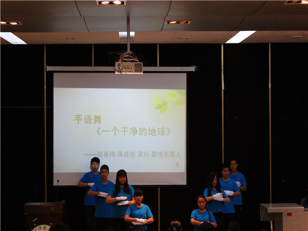 一曲吉他弹唱《小手拉大手》拉开了本次观摩会的序幕。紧接着,15级3班的黄敏等同学为我们带来访谈节目《小王聊环保》,在欢声笑语中向我们传递环保知识。诗歌朗诵《绿色的呼唤》更是诚挚地呼吁大家保护环境,创建绿色世界。经过了心灵的洗涤,接下来四个班的8位同学为我们带来歌曲串烧,动听的歌声,赢得掌声不断。而方言小品《人才难得》,用诙谐的语言反映出现在环保事业的人才紧缺,呼吁大家加入到环保事业中来。激动人心的互动环节,从侧面反映出了我们大学生环保知识的匮乏。最后15级3班4班的同学为我们带来手语舞表演——《一个干净的地球》,深深触动了大家的心,让大家了解治理环境的重要性和必要性。呼吁大家从现在开始行动,从自己做起,为我们的孩子们留下一个干净的地球。