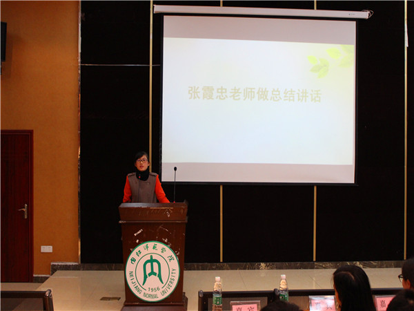 我院辅导员张霞忠老师为本次大会做总结,她强调我们化学化工学院的学子们都应该运用所学知识为环保事业贡献一份自己的力量,并且充分肯定了此次观摩会全体参与人员的努力,并给予高度赞赏。她希望,大家多在这样的舞台上锻炼自己的能力,鼓励同学们继续努力,再创精彩。