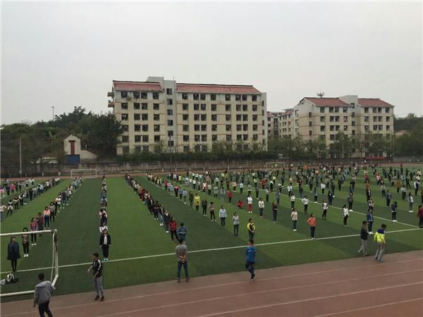 3月27日下午5:30,文学院、范长江新闻学院院长邓国军、党总支书记翁礼明、党总支副书记刘华俊一行在辅导员许小涛、15.4班班主任任思洁陪同下到西区田径场视察我院同学们团体操排练情况。