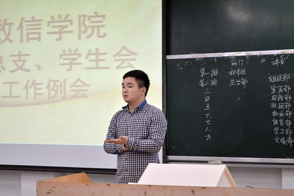 会议伊始,大会第一项进程,由团总支学生会主席郭小露对过去相关工作进行总结,另外,她还向所有成员详细地介绍了全民健身活动的开展情况,并且希望大家能够踊跃参与其中。大会进行第二项,党员工作站成员张恒通对近期党员工作作出总结。他说明了各班入党申请书的上交情况,以及每月的党组织生活会的开展进度。其次,便是各兄弟部门之间的交流。组织部、宣传部等部门相继上台发言,交流本部门的工作安排以及一些工作需求。