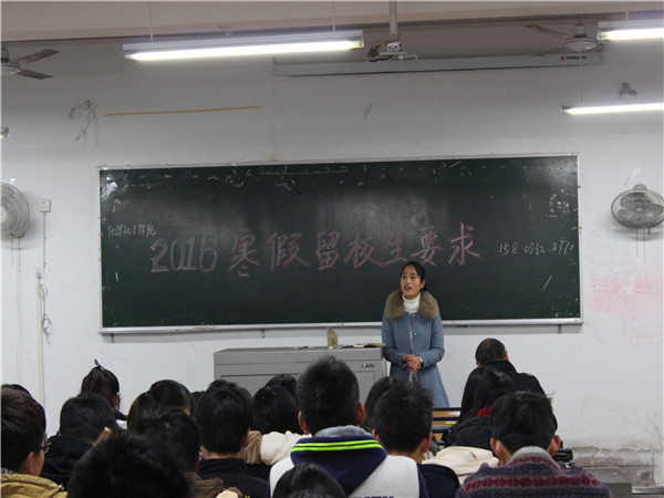 2016年寒假即将来临,为做好学生留校的有关工作,对留校的学生要提高重视加强管理和教育、掌握动态、避免在校期间安全事故的发生。1月7日11:10,我院在一教201教室进行留校期间有关事项的通知。