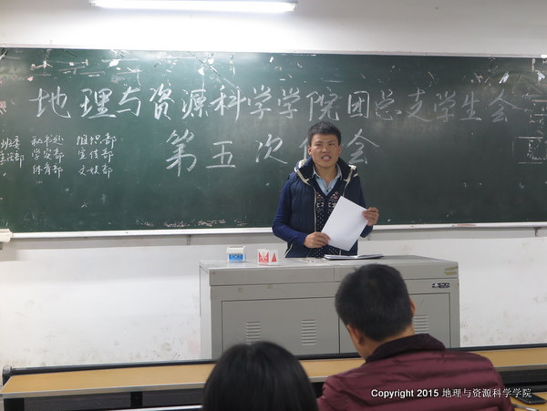 白驹过隙,2015年即将过去,新的一年即将到来,本学期学生会各部门的工作也进入了后期阶段。为了迎接新年,更好的彰显我院特色,我院将于12月20日在东区礼堂举行“新随地动”迎新晚会,为保证晚会能完美举行,12月17日中午12点30分,我院第五届团总支学生会在一教105召开了第五次例会。团总支学生会全体成员以及各班班长、团支书参加了此次会议,会议由秘书处姜莉主持。