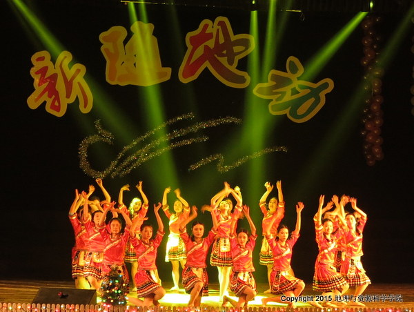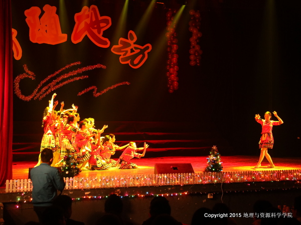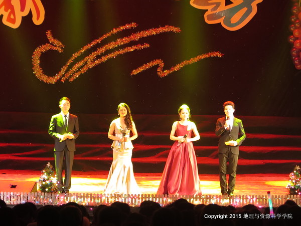 最后,这场视觉与听觉的饕餮盛宴在胡翔老师的《你是风儿我是沙》中落下帷幕。本次晚会节目异彩纷呈,配合默契的相声,热情洋溢的舞蹈,优美动听的吉他弹唱,涓涓细流的钢琴演奏,充满悬念的抽奖环节等都向我们展示着地资学子的青春魅力和风采,为所有人带来了精彩的视听享受。晚上8点50,本次晚会圆满结束。在这里向所有参演人员以及后台工作人员道一声谢!