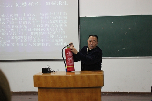 讲座一开始,杜参队长就给我们举了几个真实又骇人的火灾事例,让我们不由自主的认真紧张起来。事例之后教给我们一些应对突发危险的技巧、并且告诉我们要放宽心不能慌张。最后杜参队长给我们讲了灭火器的使用原理和操作步骤,并组织同学们进行了安全逃生演练。