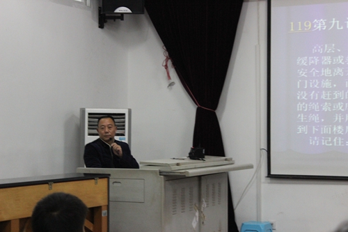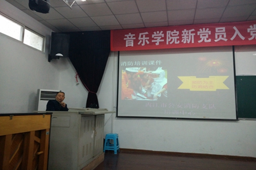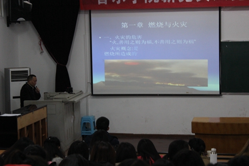 音乐学院于2015年12月14日下午4:10在四教六楼开展了消防安全知识讲座,此次讲座邀请了内江消防支队的杜参为主讲人,2015级全体学生和辅导员蔡朋程老师参加。