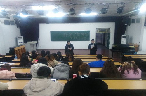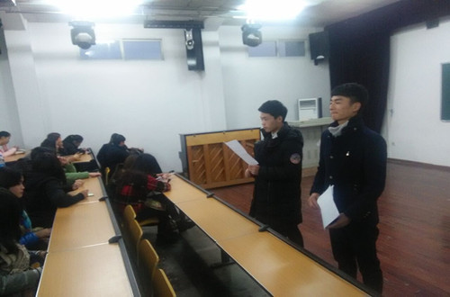 12月20,晚上18:00,2015级3、4班在四教六楼多媒体教室开展了主题名为“拒绝危险驾驶,安全文明出行”的主题班会,班主任蔡朋程老师参加。