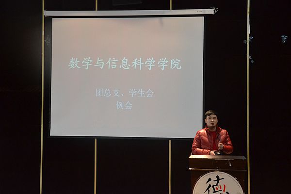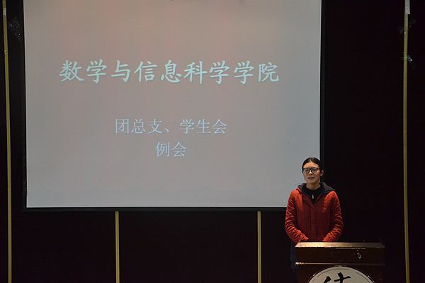 接着,由团总支副书记刘颖以及学生会主席郭小露上台进行讲话。副书记刘颖首先带领大家以最热烈的掌声对吴畏老师这一年的辛苦付出表示衷心的感谢,在讲话中她提到关于我院的扶贫计划,她十分感谢各班班委的配合与支持,郭小露主席则提出这是今年的是最后一次例会,希望大家继续保持对团学的热情和激情,在下学期的工作中更加的投入,希望大家可以携手将数信学院团学建设得更好。最后,她希望大家后期应将重心转移到学习上,并在期末考试中取得优异的成绩。