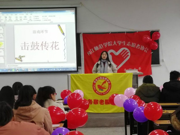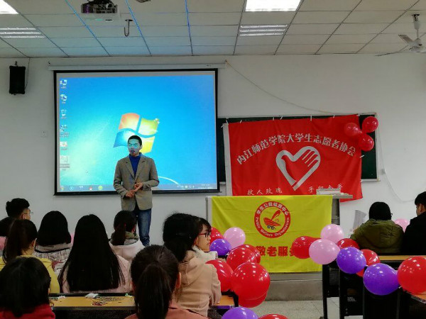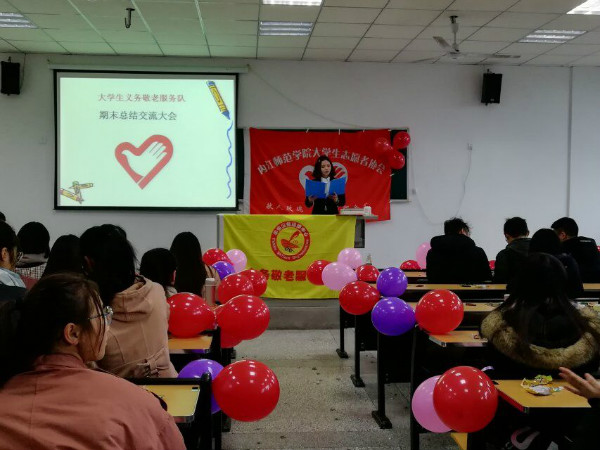 内江师范学院大学生志愿者协会义务敬老服务队期末总结大会于2018年12月7日中午12:30在中文楼301教室顺利举行并圆满结束。大学生志愿者协会义务敬老服务队期末总结大会的开展体现了我校大学生对敬老工作的责任感,彰显了大学生积极投身公益事业的奉献精神。