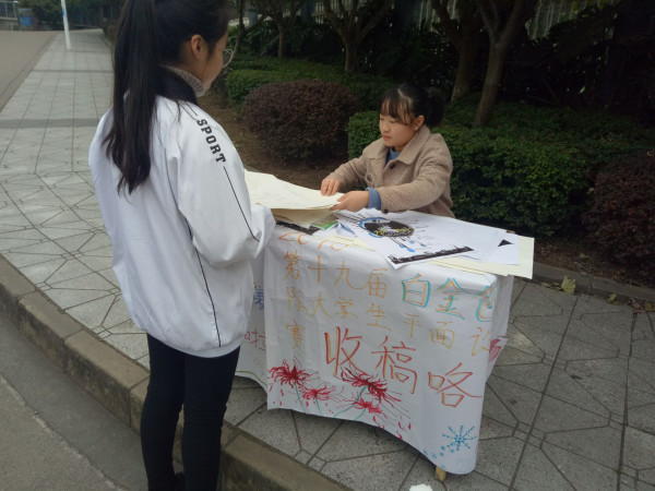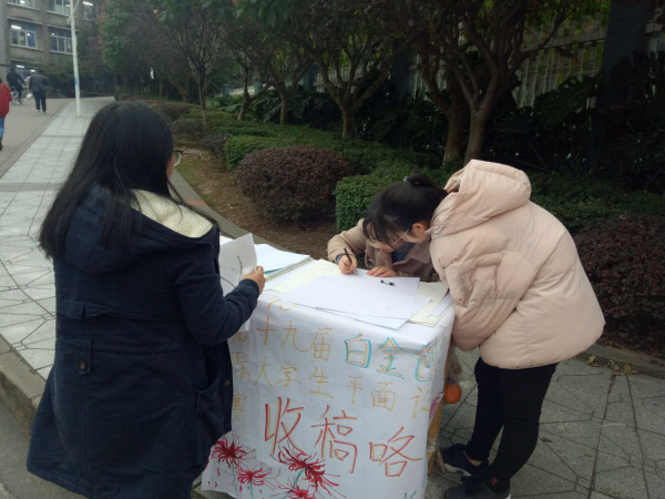 在收稿期间,有不少同学拿着自己满意的设计作品来到艺千广告协会的值班地点交稿,艺千广告协会收到的设计作品数量众多。