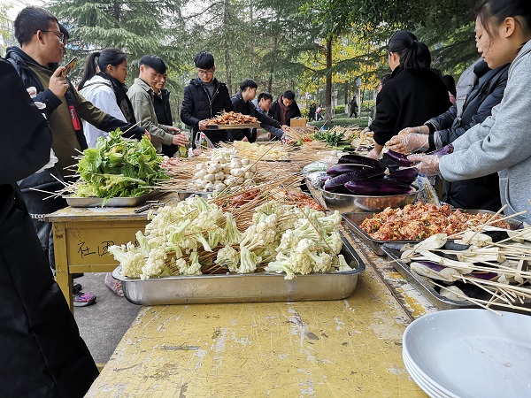 据了解,活动当天,烹饪协会全体干事在八点许便到达活动地点山腰球场为当天晚上的活动做准备。干事们在上午分工洗菜、串串儿,下午分工烤串和布置场地,并且在下午七点前将场地布置完成。