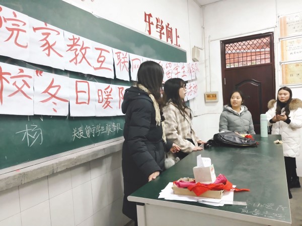 志愿者们先对教室里小朋友们的纪律进行了要求。八九岁正是孩子们贪玩调皮的年纪,志愿者们拿出糖果吸引小朋友们的注意力以维持好课堂上的纪律。此次关爱志愿活动的主要内容是和小朋友们玩游戏,通过游戏分发礼物的同时给小朋友们带来欢乐。志愿者们还充分考虑到了天气、场地的影响,选择了最为合适的游戏——室内击鼓传花。这个游戏可以让每个小朋友都参与进来,同时又给小朋友们展示自己的机会。游戏刚开始时,有些小朋友还很羞涩,不太想表现自己,可随着时间的推移,越来越多小朋友愿意表现自己。猜谜,唱歌,朗诵甚至是一个独特的技能一点点的拉近着小伙伴们的距离。快乐的时光总是飞速流逝的,看似不断的两三个小时很快便在欢笑声中走到了尾声。