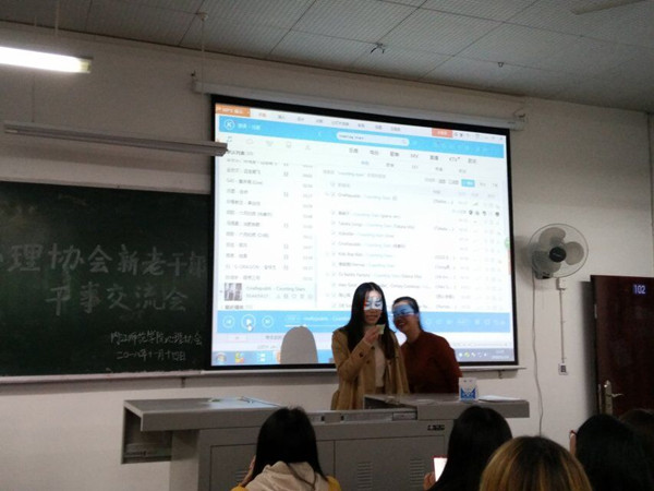 2018年11月14日内江师范学院心理协会本着促进各干事间的交流、提高新成员们对工作的认识的目的,心协在一教102教室开展了新一届的新老干部干事交流会活动。