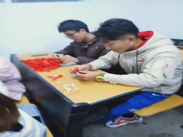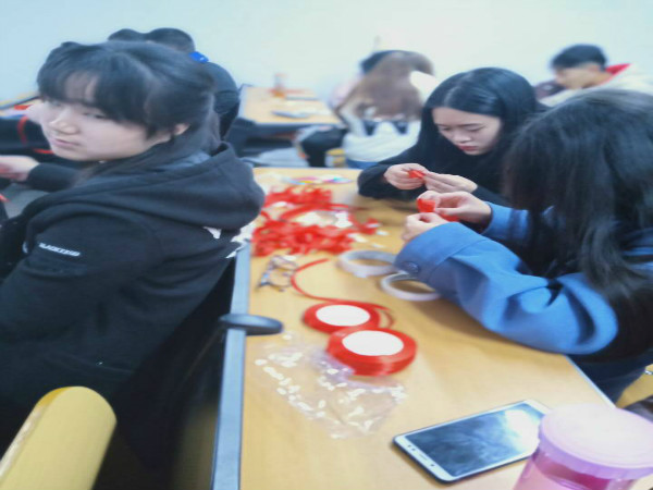 当天下午14:30,志愿者协会各部门的参与者纷纷来到一教109教室,负责分发制作材料的学生随即给各部门参与者分配好制作工具。大学生志愿者协会会长张栋才、副会长付松勇及组织部部长熊令对前来的志愿者表示热烈欢迎并亲自指导制作。志愿者们分工协作,短短的时间不仅拉近了彼此的距离,也让大家感受到了奉献的快乐。下午16:30,志愿者们顺利完成所有预防艾滋病红丝带的制作,过程虽然很辛苦,但大家感到的是喜悦。