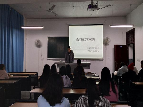 2018年11月17日晚上19:00,水族创新创业协会为丰富各会员专业文化知识和校园生活,增进对专业的理解和热爱,培养浓厚的专业学习兴趣,提高会员积极性加强会员之间的交流,在八教低阶一举办了鱼类繁殖与苗种培育活动。