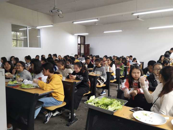 活动最后,副会宣布完成制作的会员可以先离开,会场的打扫由干事们完成,烹饪协会一直秉承着节约的理念,打扫完成后,干事们把剩下的生菜、黄瓜等食材给了食堂。