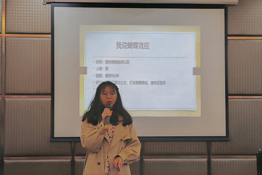 教育科学学院2020级2班童国庆以《大学生心理特点与爱国主义情感培养》为题,用扇形图清晰指出目前大学生普遍意志力不强的特点,呼吁当代青年拒绝“躺平”,保持奋斗姿态,为建设祖国贡献青春力量。数学与信息科学学院2020级2班徐萌霞在《转型背景下川威集团对小镇的现代化重建》主题演讲中,阐述企业与小镇现代化建设互惠互利的关系,倡议广大青年学有所成,报效国家。政治与公共管理学院2019级4班陈美玲以《侠之大者,为国为民》为题,从侠义精神历史脉络入手,讲述侠的三种境界、侠义精神的现实意义以及侠义精神的启示,总结出“侠之大者,为国为民”的真谛。