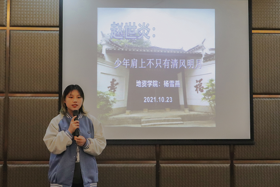 “千树桃花凝赤血,工人万代仰施英。”地理与资源科学学院2019级2班杨雪燕以《赵世炎:少年肩上不只有清风明月》为题,深切缅怀革命烈士赵世炎,强调新时代的青年肩上不只有清风明月,还有家国责任。教育科学学院2020级2班杜世宇用视频阐释《拒绝emo,改变自己》的主题,生动解释了最近的“emo”热梗,希望当代青年做出改变,保持昂扬姿态,增强民族自信,不负时代重托。政治与公共管理学院2020级3班刘定雨以热播爱国电视剧《觉醒年代》开题,在演讲《建党百年回望〈觉醒年代〉谈起》时,剖析了韩流、日流对主旋律影视的影响,谈到应当提升文化自信,大力弘扬主旋律影视,发挥其价值引领与精神传递的正向作用。政治与公共管理学院2019级4班赵紫君以《弘扬抗美援朝精神,争做时代奋斗青年》为题,再现抗美援朝战争中黄继光和宋阿毛等人的英勇事迹,诠释出抗美援朝精神内涵。