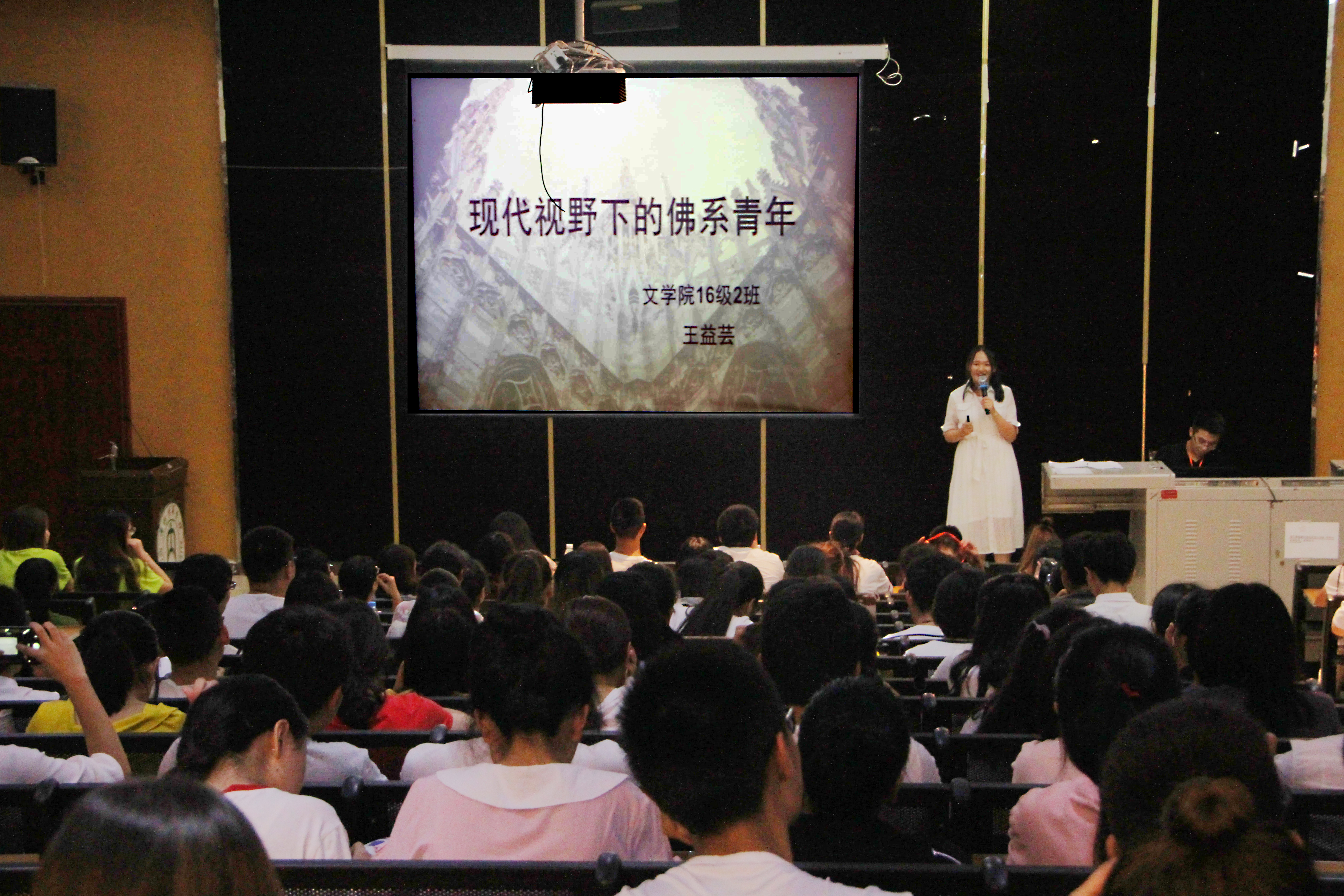5月29日晚7点整,我校2017-2018学年度(下)“沱江学子”讲坛第二场在第二学术报告厅拉开帷幕。来自文学院2016级2班的王益芸为大家带来《现代视野下的佛系青年》的专题演讲。文学院刘鹏老师与各二级学院学生代表共同聆听了本次演讲。
