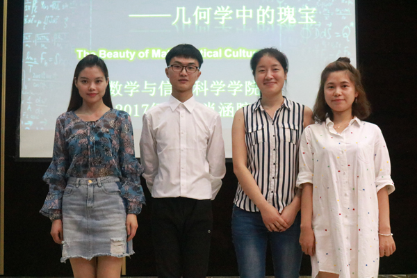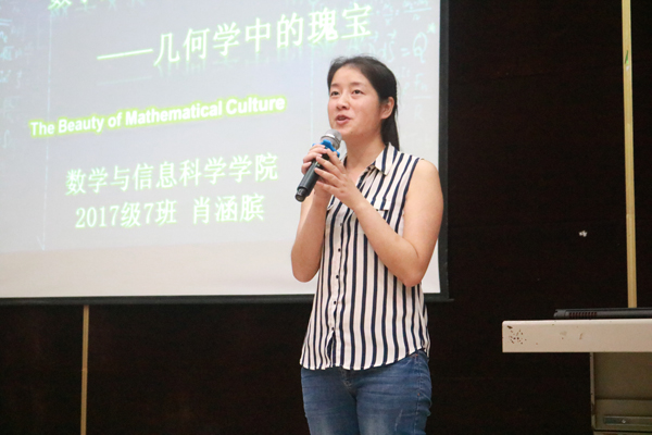 6月5日晚7点,我校2017-2018学年(下)“沱江学子”讲坛第三场于第二学术报告厅顺利举行。数学与信息科学学院17级7班的肖涵膑同学以“数学文化之美——几何学中的瑰宝”为题,为观众们带来了一场内容丰富而充满趣味的讲座。数学与信息科学学院教学办主任徐小琴老师、学工办辅导员吴畏老师、张列老师、刘敏老师出席本次讲座。
