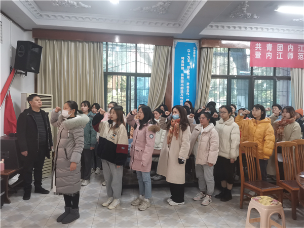2021年12月20日13:30,外国语学院在中心会议室进行了新党员入党宣誓及老党员重温誓词仪式,党总支副书记李仰锐主持大会,党总支副书记唐德斌(主持工作)出席会议,各支部书记、全体党员、预备党员参加大会,越西支教的党员同志视频在线参加。