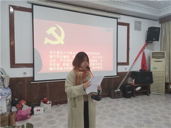 宣誓仪式之后,胡鸿颖同志作为预备党员代表进行发言,她说作为预备党员,要认真贯彻习近平新时代中国特色社会主义思想,以求真务实的作风,处处以党员的标准严格要求,实事求是地开展批评与自我批评,努力提高党性修养,以更加饱满的热情,开拓进取和与时俱进的精神为中华民族伟大复兴而奋斗。