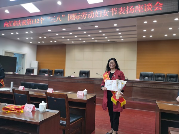 3月7日,内江市召开庆祝第112个“三八”国际劳动妇女节表扬座谈会。我院许酉萍教授荣获内江市2021年度“巾帼建功标兵”荣誉称号,受邀出席内江市“三八”国际劳动妇女节表扬座谈会。