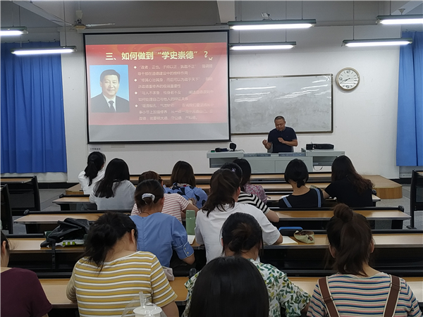 2021年6月17日19:00,外国语学院学生支部全体党员在第五教学楼南307听取题为“学史崇德,争当新时代明大德、守公德、严私德的标杆”的党课,党课由外国语学院党总支副书记李仰锐主讲。