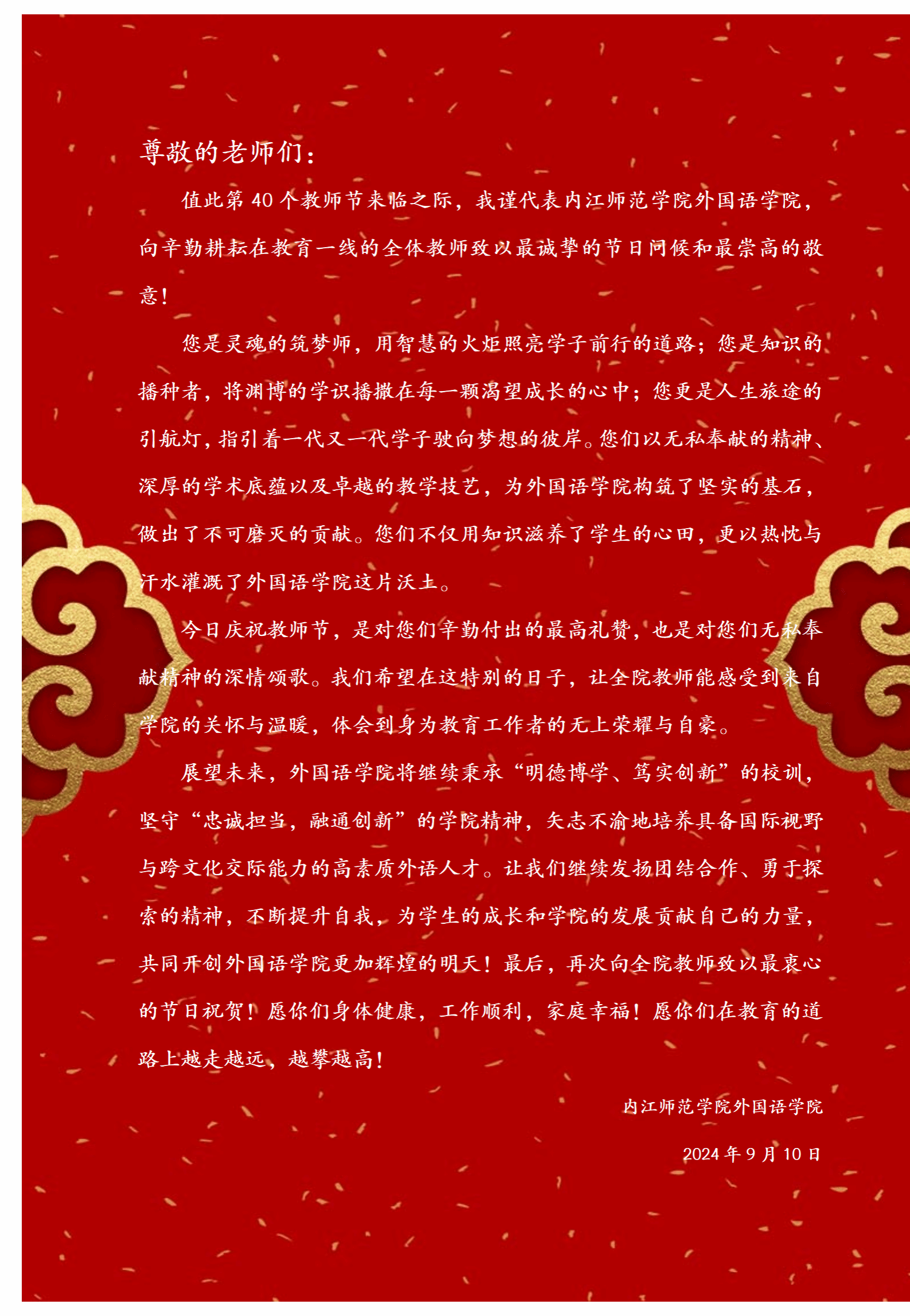 内江师范学院 外国语学院 地址:四川省内江市东兴区红桥街1号 联系电话:0832-2342218