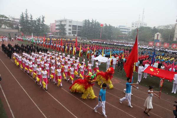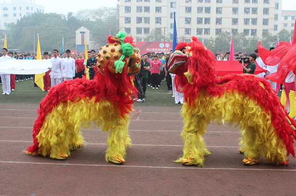上午,内江师范学院第十二届运动会在西区田径场隆重开幕,伴着雄浑激昂的运动员进行曲,彩旗方阵和各学院方阵依次入场。张大千美术学院的学生手持黄色和红色的扇子,踏着整齐的步伐和喊着响亮的口号走过主席台,两只威武的狮子走在队伍的前面,精彩的表演,获得了阵阵掌声。我院方阵以崭新的风貌、独特的表演、充满朝气的青春气息获得了校领导的高度肯定。