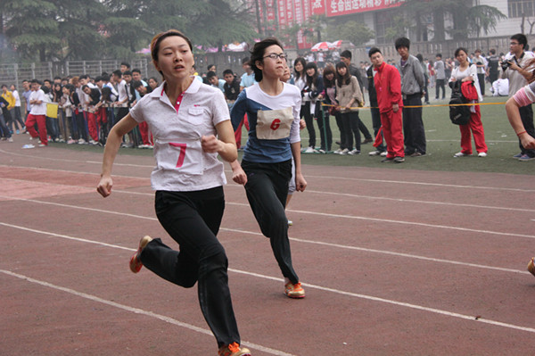 随着开幕式的结束,运动员们已经开始热身准备,跃跃欲试。赛场上,我院运动健儿们激情飞扬、奋力拼搏;观众席上,拉拉队们的加油呼喊声此起彼伏,整个场面热闹非凡。在东区草坪,我院女子铁饼宋丽静同学以21.55米高分荣获全校第二,唐素容、郭改仙同学取得第四第五的优异成绩;男子铁饼殷喜、谢柱华同学也获得了第五第六的不俗成绩;在田径场,姜霞在女子跳远比赛中夺冠,男女勇往直前都排名前三列;在山顶球场上,拔河比赛,我院也相继赢得了外国语学院、工程学院、音乐学院和教科学院,在半决赛中喜获第一名,小试牛刀,初露锋芒,希望可以再接再厉,打破张大千美术学院6连冠的神话,再创奇迹。