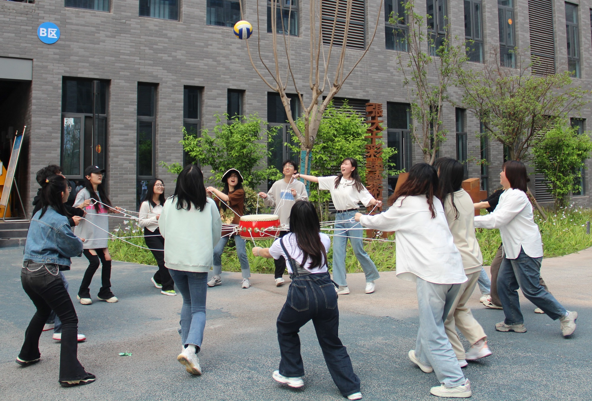 活动开始时,学生会成员在美术学院门口集合,由学生会秘书处进行点名。主持人宣读了开场宣言,并讲解了活动游戏的具体规则和顺序安排。在组员争夺战的暖场后,主持人引导大家进行了乒乓球接力、你猜我画、背对背夹球、鼓动人心、拔河等游戏。同学们参与积极,紧张而又愉悦的氛围贯穿始终。最后,根据各组得分情况,杨静老师为前三组颁发了精美奖品。